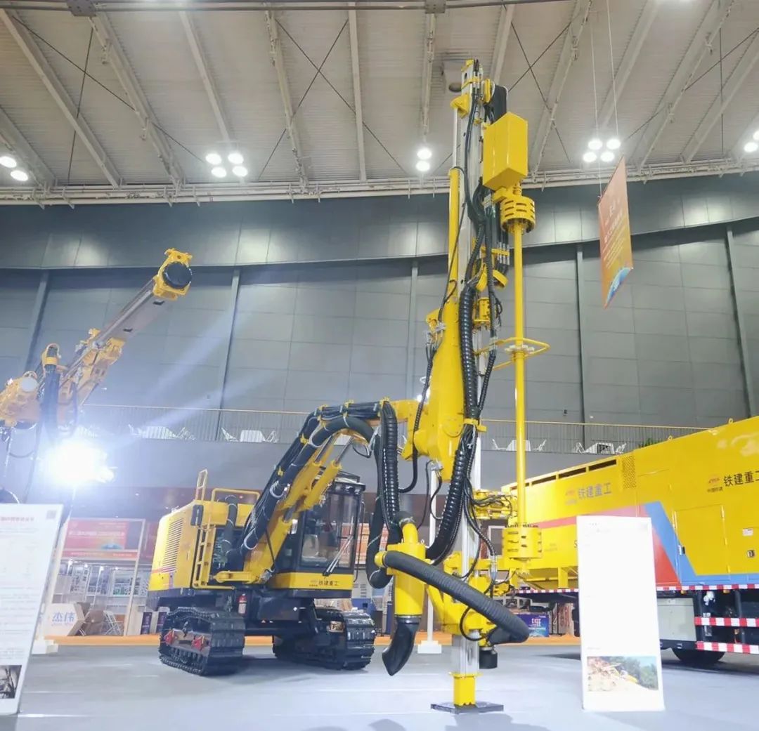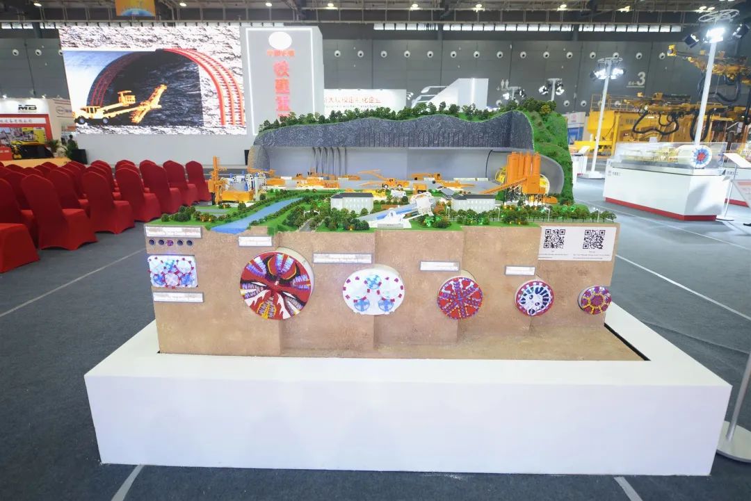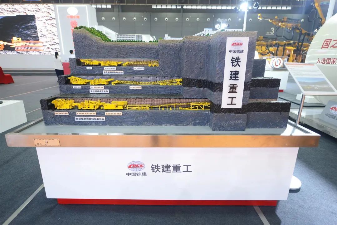 在铁建重工1870平的超大展台里,20余款代表行业领先技术水平的产品整齐列队,接受现场观众的观摩。其中包括国产首台16米级超大直径泥水平衡盾构机“京华号”、国产最大直径土压平衡盾构机“锦绣号”、我国最深海底隧道掘进机“深江1号”以及全工序钻爆法隧道智能装备。