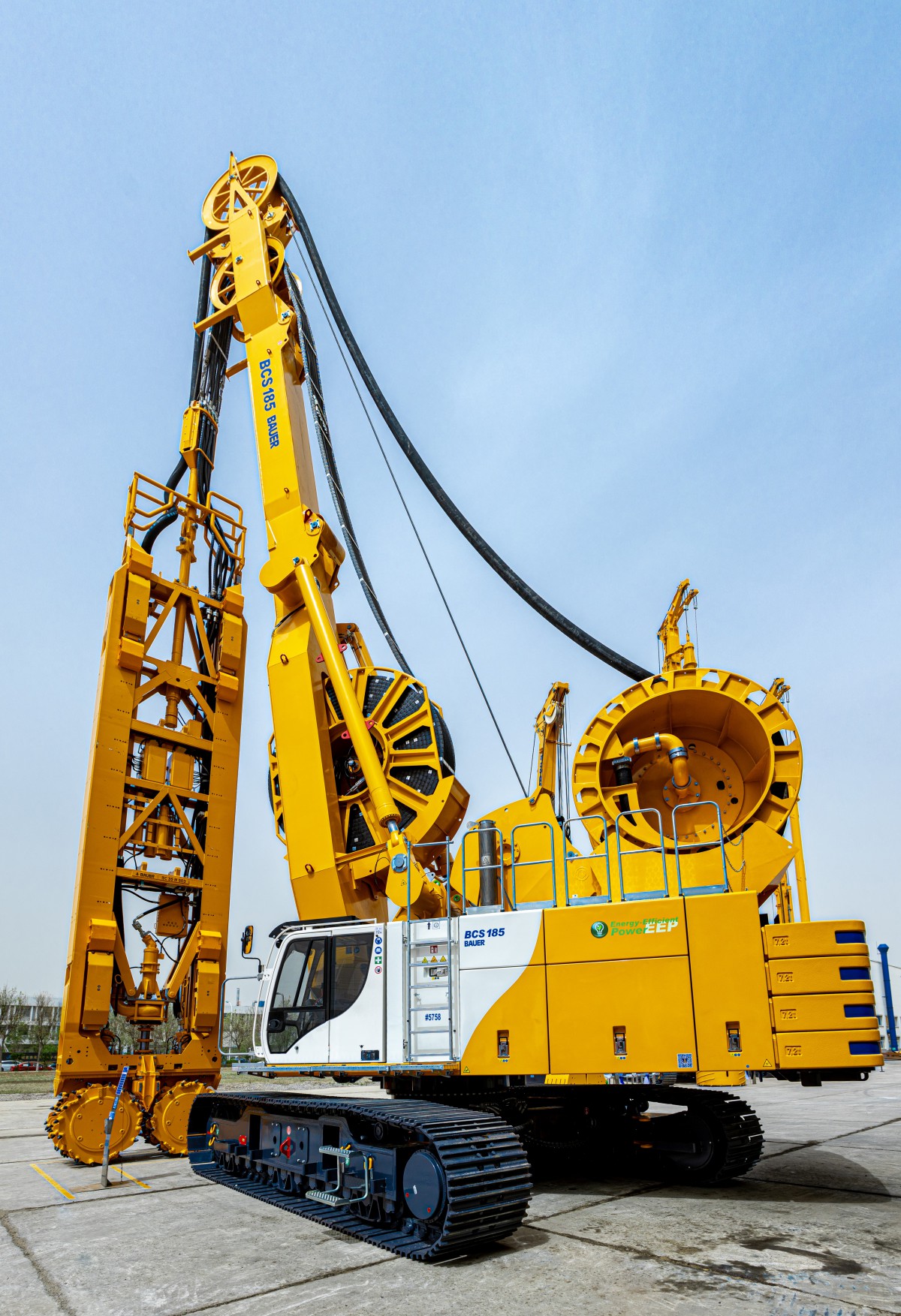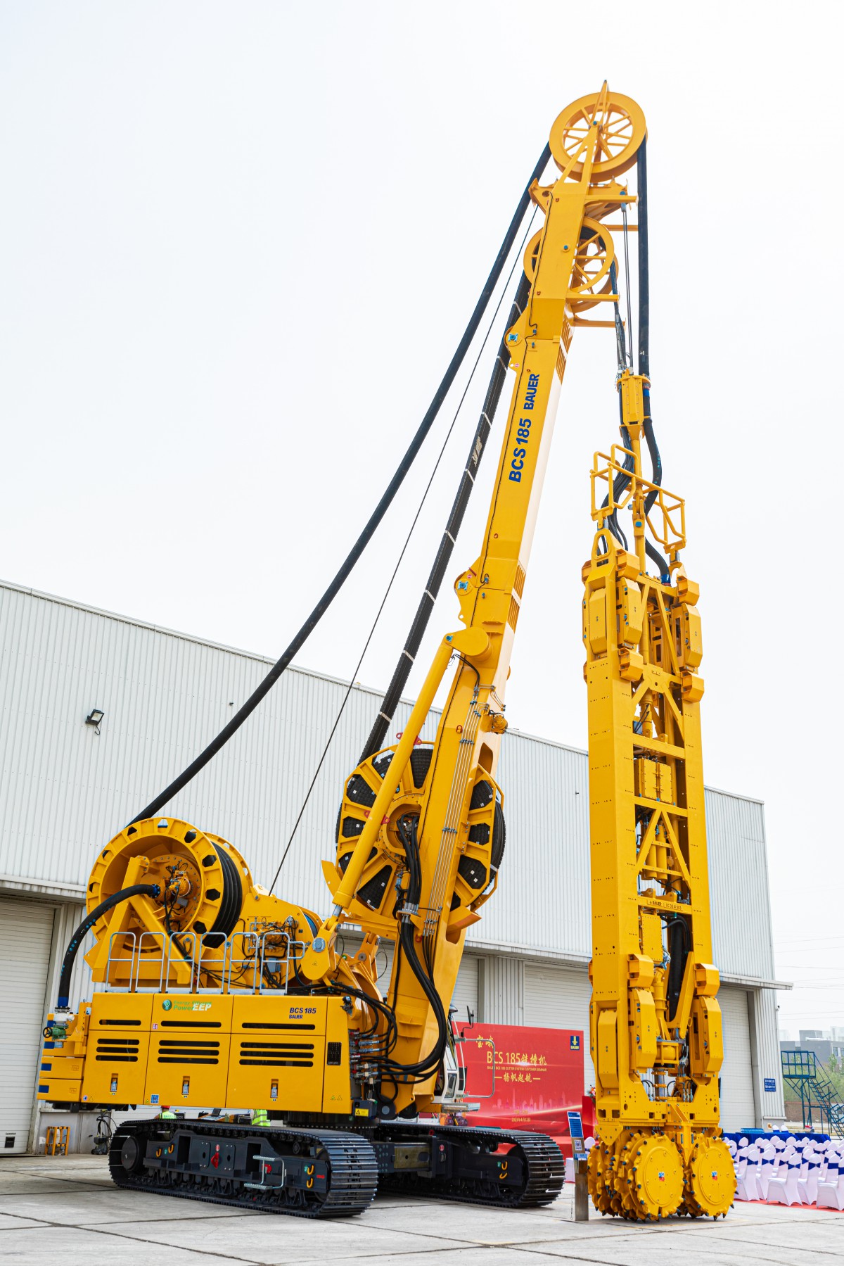 BCS 185是宝峨新款双轮铣槽机系统,配有动力强劲的双轮铣专用底盘,其最大荷载可达43吨,配备565千瓦的沃尔沃发动机,可以搭配BC 32到BC 48的宝峨铣槽机。采用了卷管系统设计方案,最大施工深度可达90米。