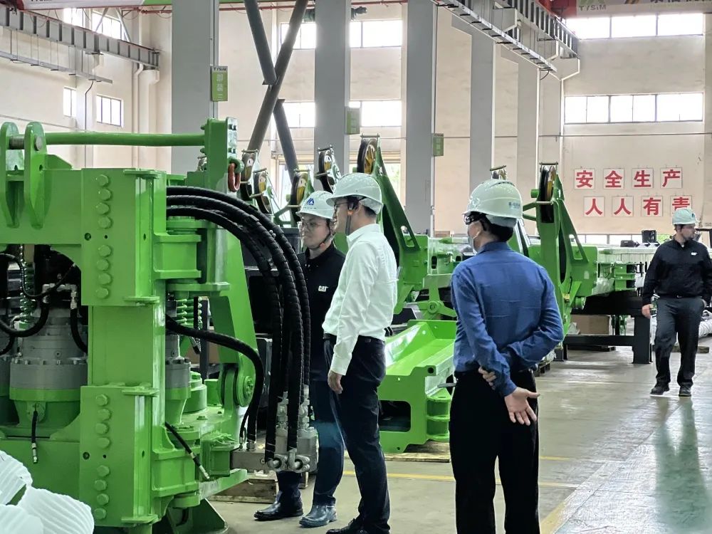 来访领导一行在泰信管理团队的陪同下,共同参观泰信制造车间并观看钻机工法演示。品牌创始人辛鹏董事长为来访领导介绍了泰信的企业发展史、组织架构、研发重点及中小旋挖钻机的前景应用,并着重介绍了近几年泰信在“小型化、定制化、多面化、国际化”这四个方面确认的发展方向及建立的核心优势。泰信机械多项定制型新产品的开发填补了行业空白,特别是为国家电网定制开发的钻机系列,解决了我国电网线路“基础施工长期依靠人力开挖”的施工难题,大幅提高了送变电线路基础施工的安全性和施工效率,为我国电力建设的“全机械化”施工做出了杰出贡献。