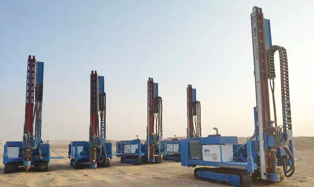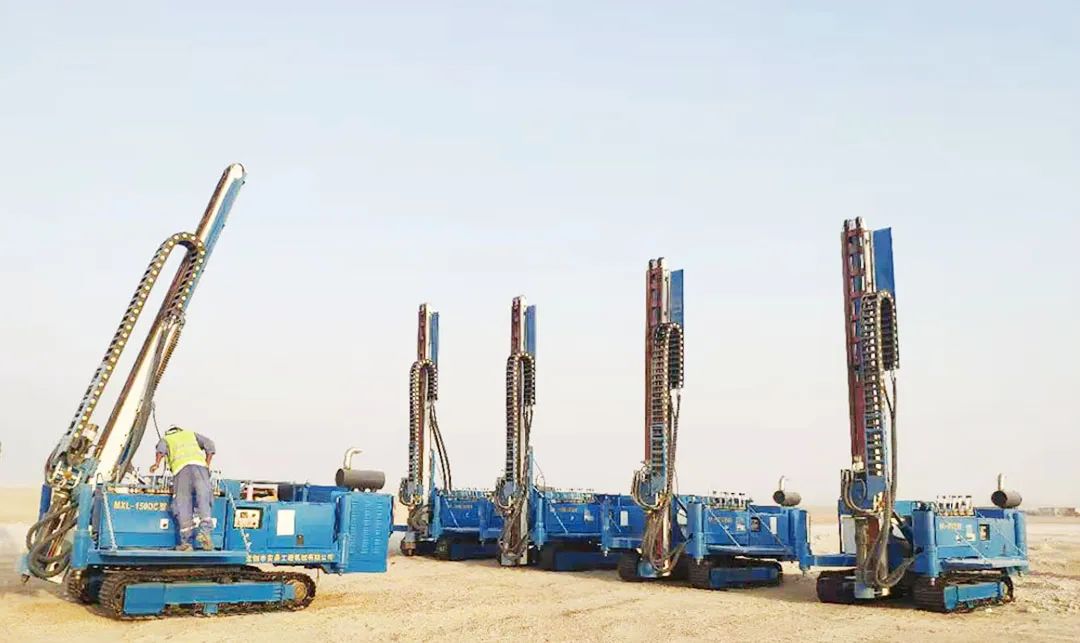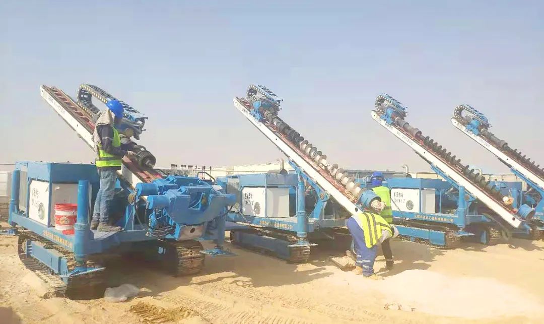 2019年安曼智造在迪拜光伏电站项目施工中初露锋芒,6台MXL-150DC型光伏钻机运用麻花钻杆引孔施工,以性能优、效率高、服务佳获得客户和项目部的一致好评。