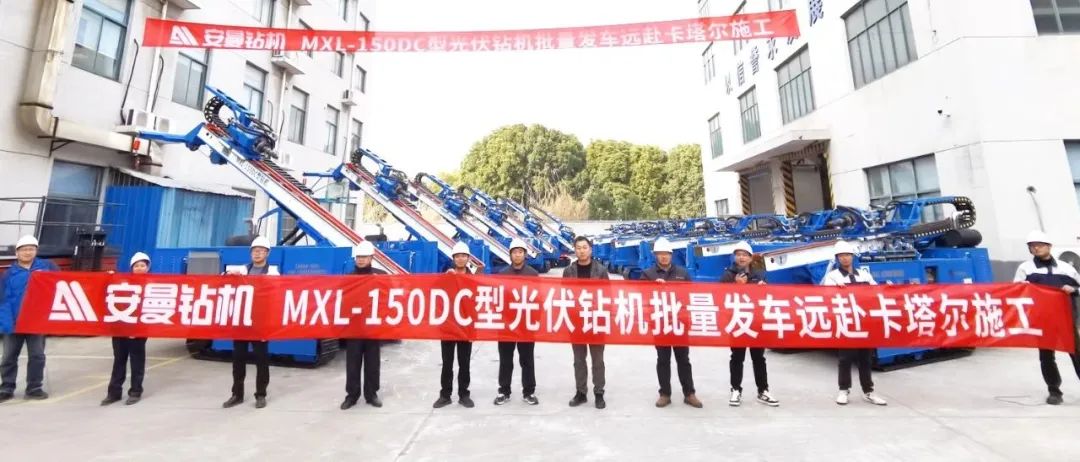安曼钻机全新升级款MXL-150DC型光伏钻机批量发车,优化满足客户入岩效率高、对孔操作快、劳动力节省的要求,奔赴卡塔尔施工现场展现安曼智造的速度和温度。