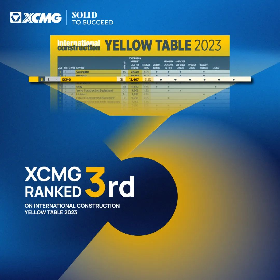 6月1日,全球工程机械行业知名资讯集团KHL旗下《International Construction》杂志权威发布Yellow Table榜单,中国制造商徐工XCMG蝉联第三位。徐工也成为唯一连续三年跻身全球前三甲的中国工程机械制造商。