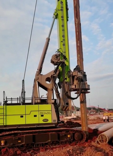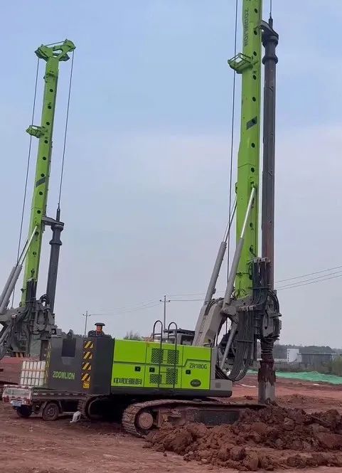 项目中,十台中联重科旋挖钻机协同施工。其中,两台ZR160L-ll、一台ZR180G和一台ZR240G都是适合土层的G系列小机型,平均每台设备每天能打150米-200米深桩。作为“软硬兼施”的施工利器,ZR240G使用了第四代ROADS智能控制系统,发动机与液压系统匹配更优,主阀与管路升级,系统压损减小50%,钻进更省油施工更稳定;ZR180G匹配大流量泵阀(220级别),凭借大扭矩、高转速以及加压油缸具备的快速加压/起拔功能,油缸空行程时效率更高,能打强风化地层也能轻松甩土,具备经济高效、节能省油的特点。