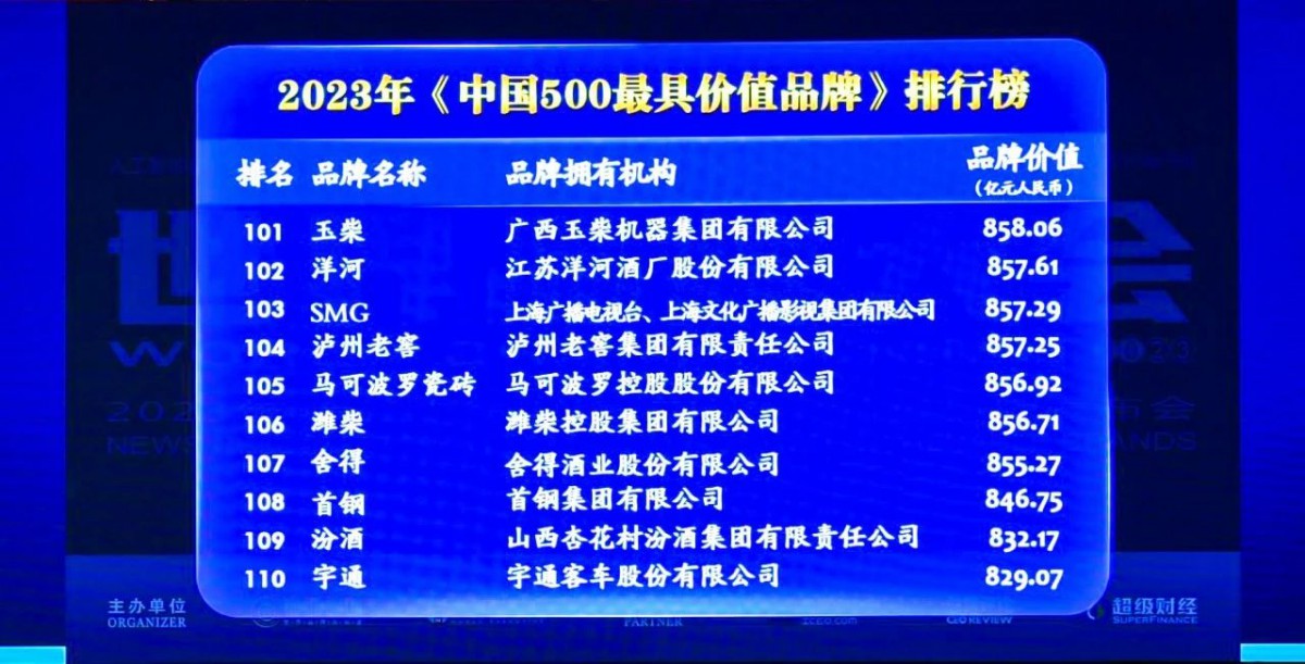 近日,由世界品牌实验室主办的(第二十届)“世界品牌大会”在北京举行,会上发布了2023年“中国500最具价值品牌”分析报告和排行榜。在这份基于财务数据、品牌强度和消费者行为分析的年度报告中,玉柴品牌价值跃升至858.06亿元,位居榜单第101位,连续18年领跑内燃机行业。