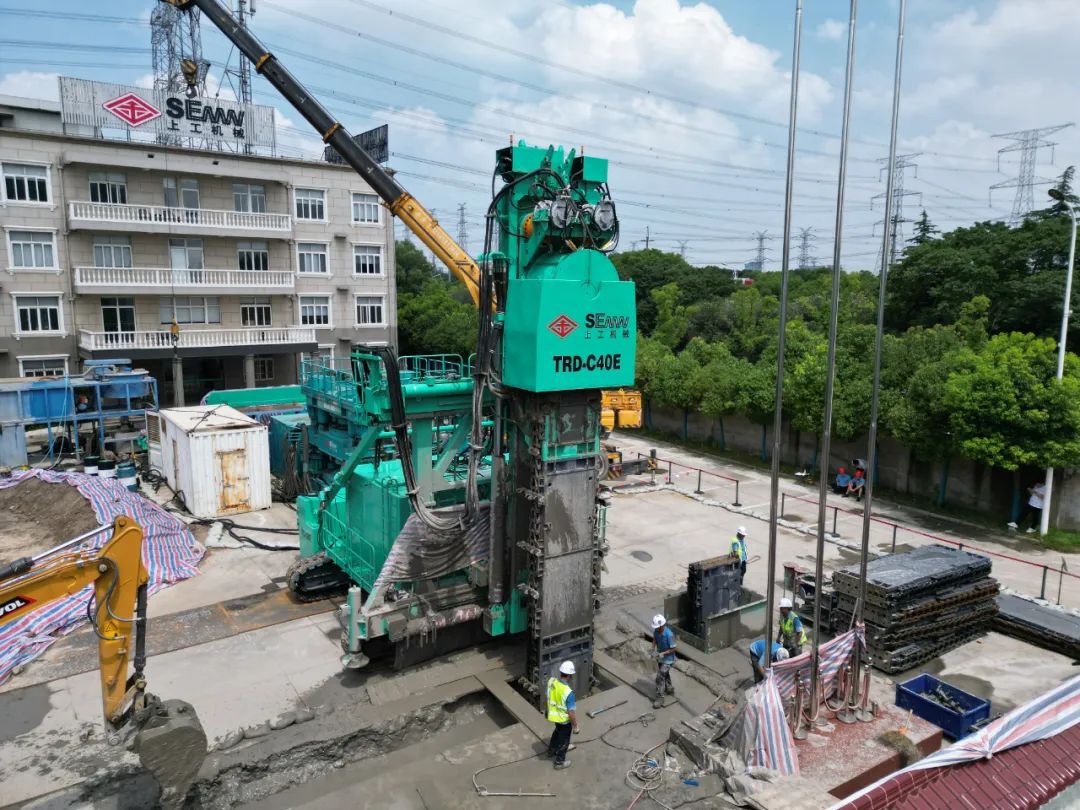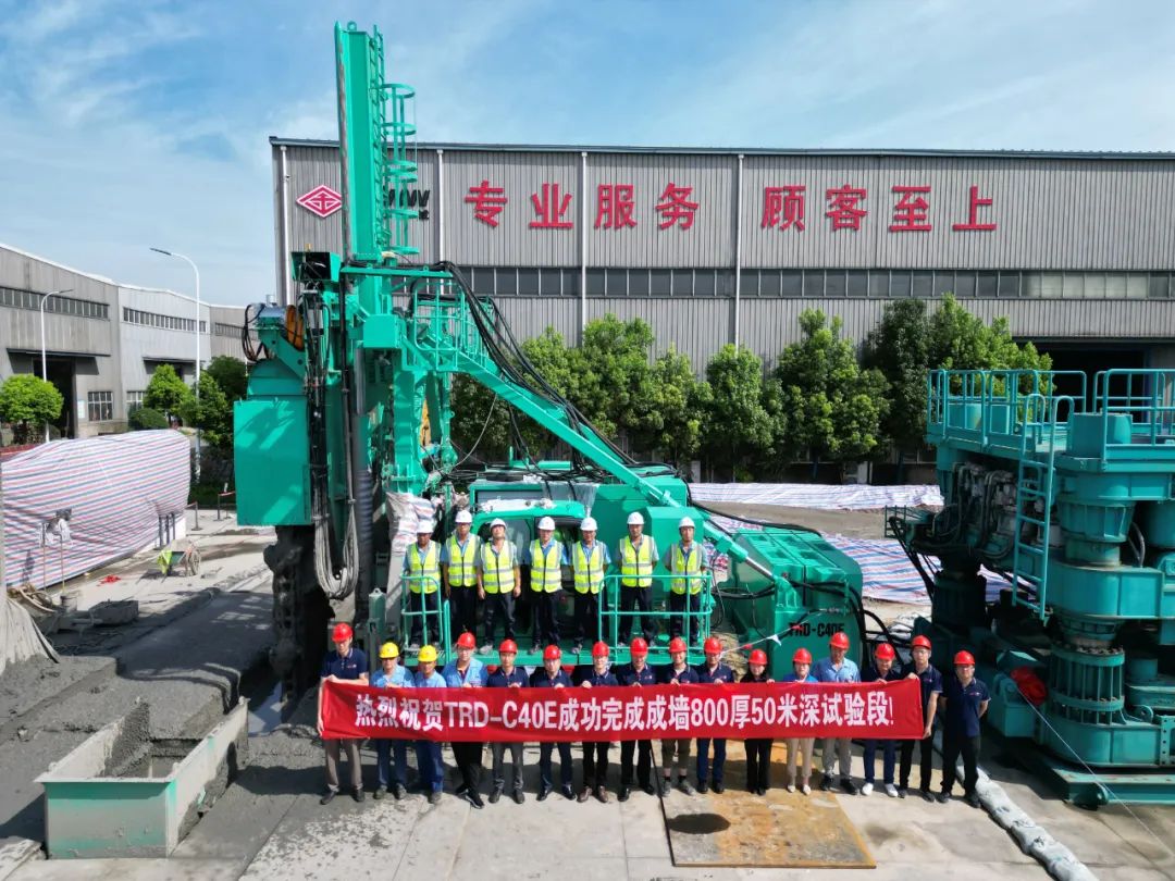 ▲TRD-C40E工法机成功完成成墙800厚50米深试验段现场