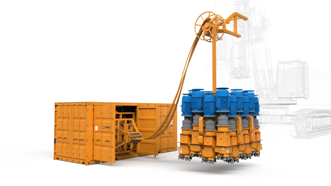 铁建重工矩形桩成孔设备最大成孔深度达35米,成孔尺寸3米×2米(±3%),设计最大破岩硬度达120兆帕。采用莱洛三角形方型成孔原理,配置撑靴支撑减震、测斜纠偏、钻头冷却、线缆集束随动、除尘等系统;通过不同数量方孔钻头和不同框架结构模块化组合,可实现多种不同截面矩形成孔;施工时先使用旋挖钻机引孔,引孔后换接矩形桩机械成孔设备进行矩形成孔,之后再换接旋挖清渣钻头进行出渣,形成了一套完整的矩形桩机械施工新工法、新装备。
