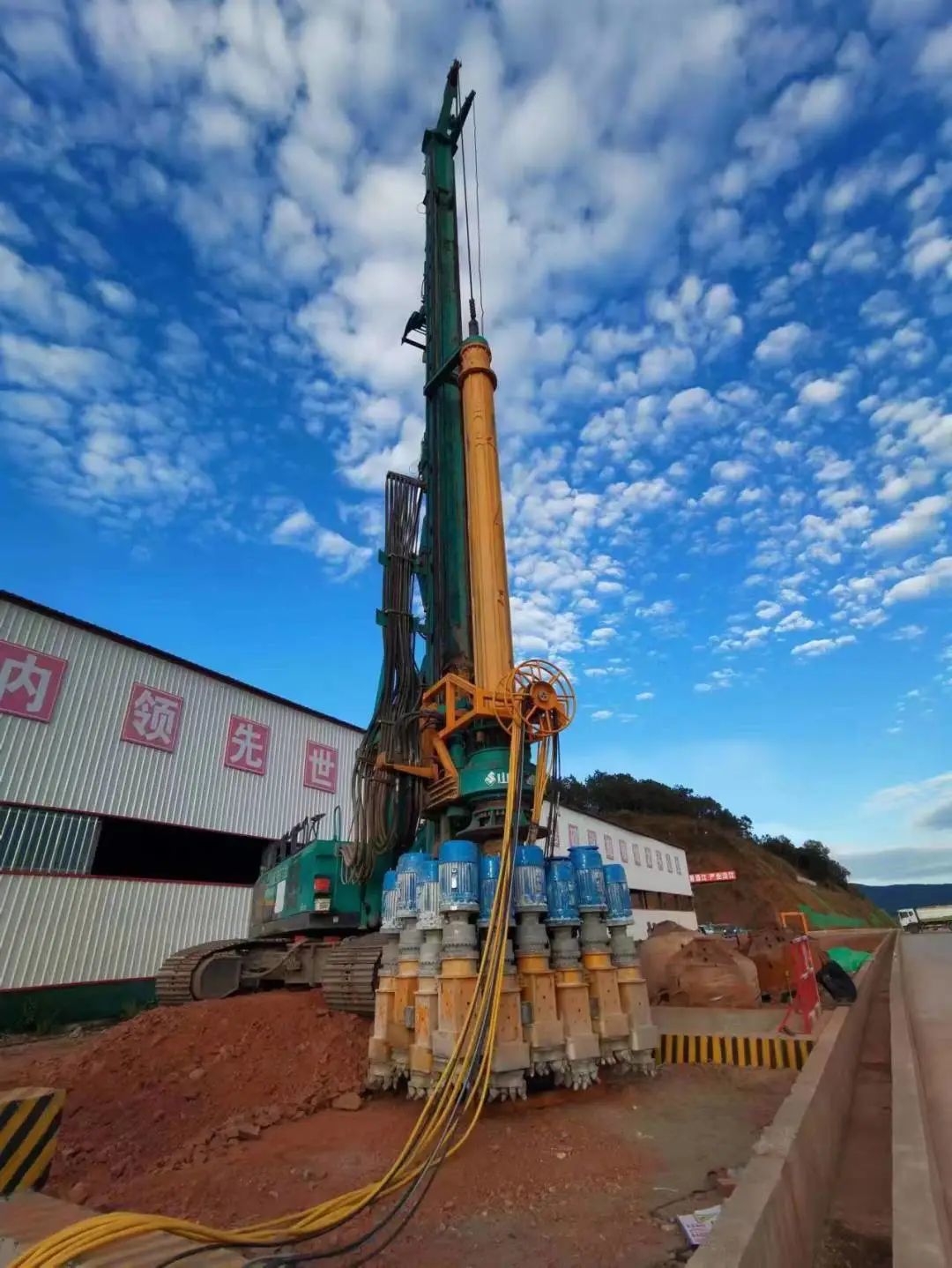 沿江高速作为凉山彝族自治州经济发展的大动脉,整个工程面临地质复杂、地层破碎、岩层硬度高、山势险峻、易发生山体滑坡等诸多难题,多个标段需要进行大量矩形抗滑桩施工。铁建重工矩形桩成孔设备在沿江高速金宁段6标金阳工地抗压强度110兆帕以上地层顺利实现钻进成孔,施工效率每小时0.1-0.6米,是传统人工施工的2-8倍,完全不需要人工进入桩孔作业,安全施工有保障!