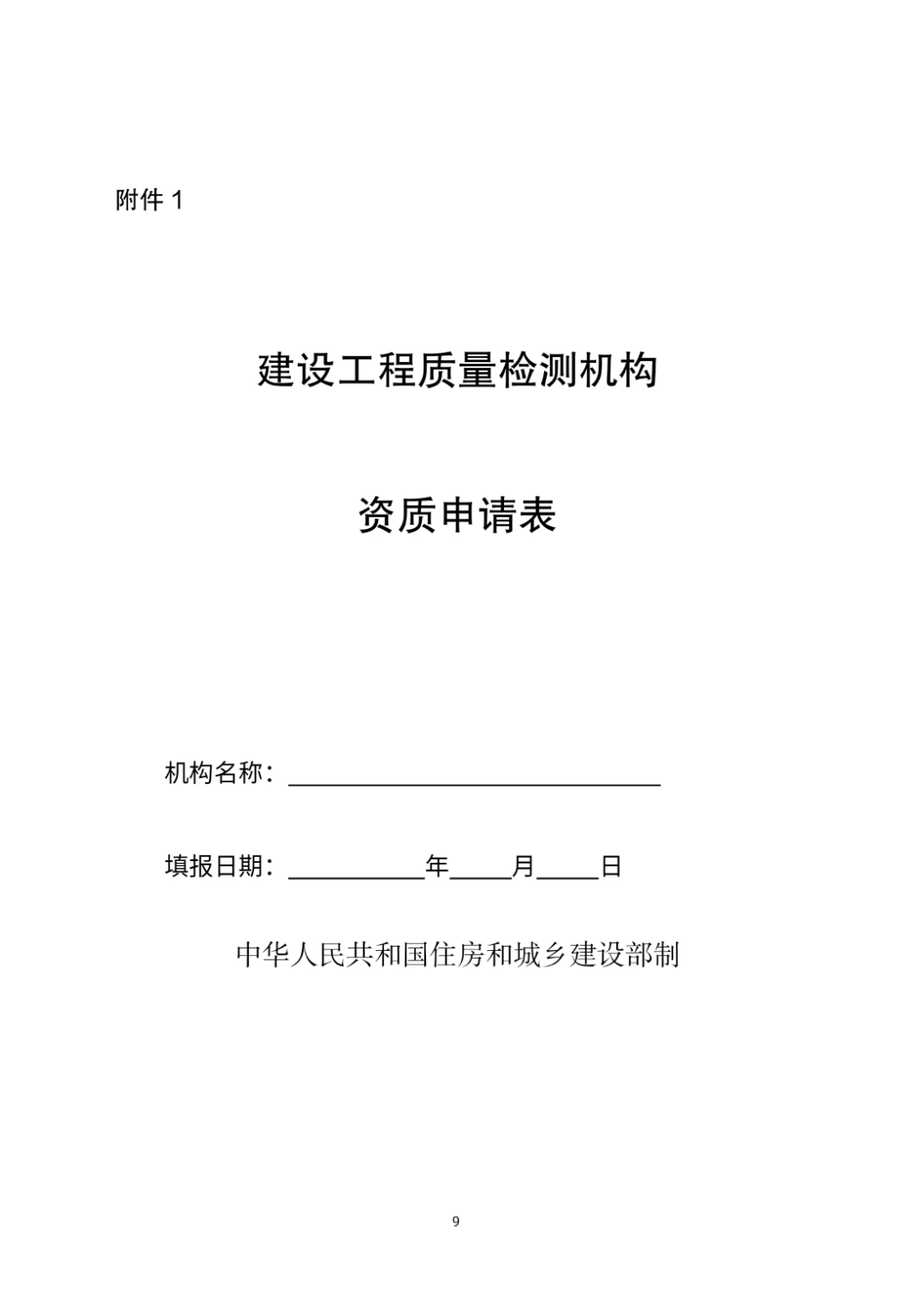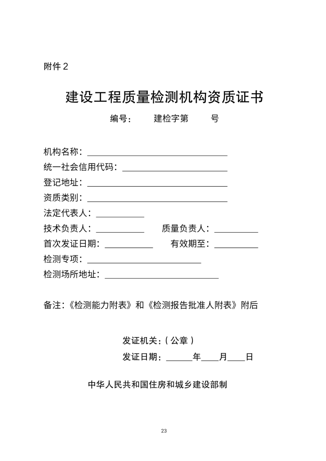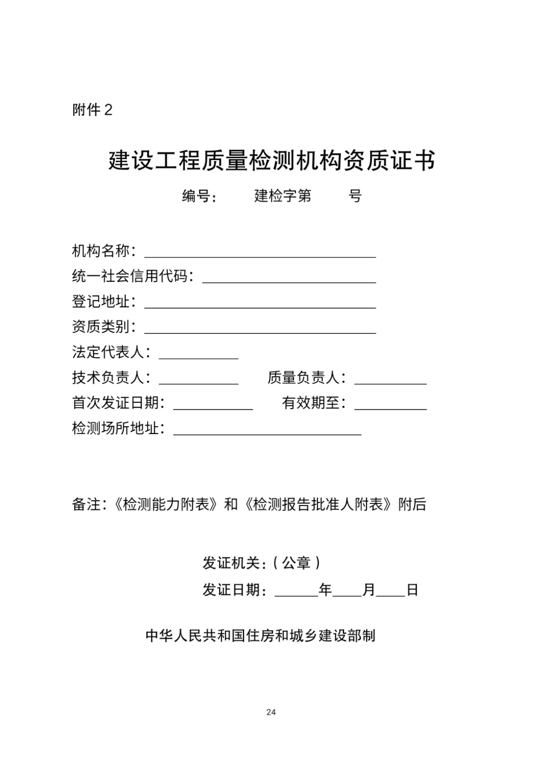 附件:1.《建设工程质量检测机构资质申请表》格式2.《建设工程质量检测机构资质证书》格式