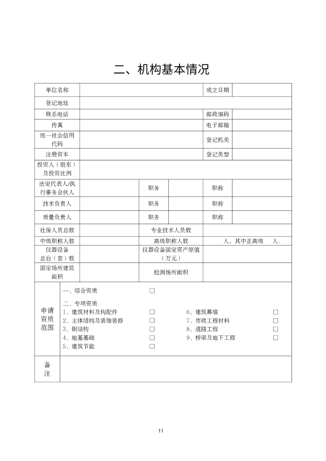 (二)申请检测机构资质时,申请人应按照《办法》第八条规定,向单位登记地资质许可机关提交材料,申请人应对所提交的《建设工程质量检测机构资质申请表》(见附件1)等材料及其内容的真实性负责。申请专项资质认定的检测场所地址须在同一个省级行政区,申请综合资质认定的检测场所地址须在同一设区市行政区。