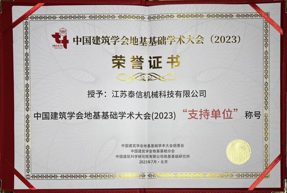 中国建筑学会地基基础学术大会已圆满落幕,它的召开为建筑地基基础领域的科技人员提供了学术交流平台,内容涉及建筑地基基础的设计、施工和科研,既有综合性的学术交流大会,又有学科领域的前沿课题和专题研究讨论以及相关标准规范的宣贯培训。以泰信机械为首的科技型企业在此共享经验与技术,同时也向优秀的同行学习取经,共同推动中国建筑地基基础领域的科技创新与发展,使之达到世界水平!