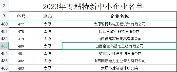 近日,山西省中小企业发展促进局公布了“2023年度山西省专特新中小企业名单”。山西金宝岛基础工程有限公司成功入选,荣获“山西省专精特新中小企业”称号。该名单是经企业自愿申报,各市工信局初审推荐基础上,经省专家组评审等程序后认定的创新能力强、代表中坚力量的优质中小企业。
