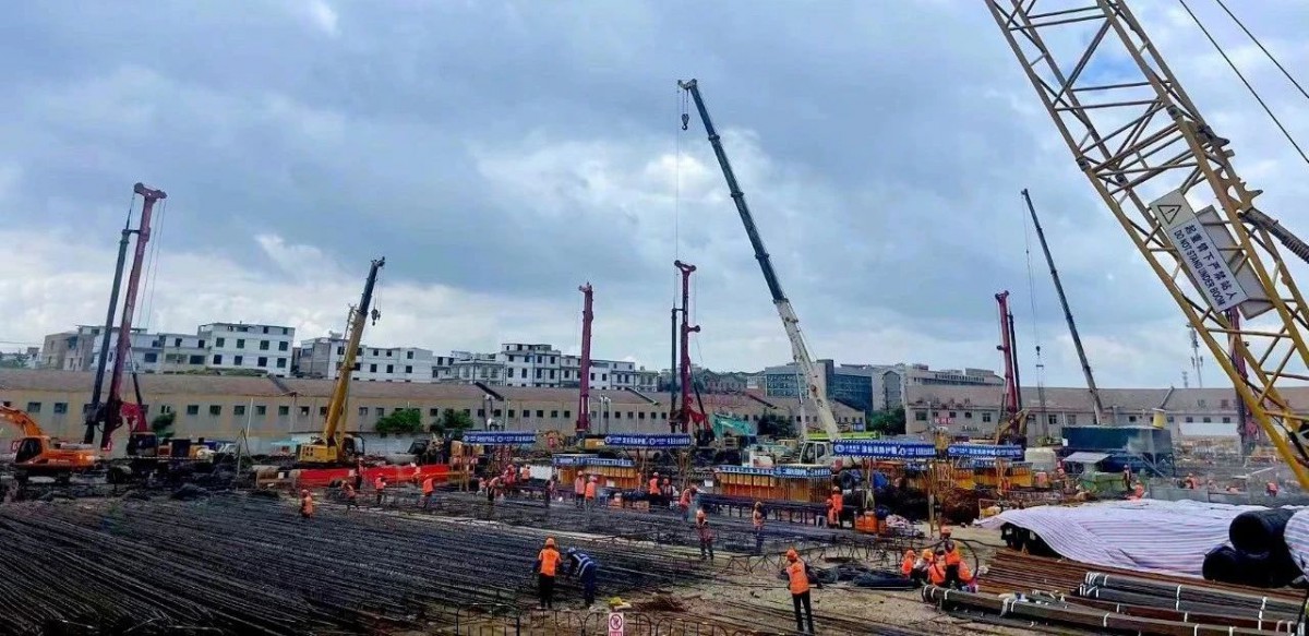 该项目施工方为云南建投第三建设有限公司,正在进行工程桩施工,工地现场有14台三一旋挖钻机。
