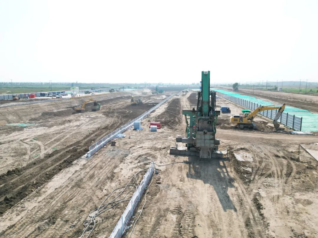雄忻高铁项目,这里虹吸”全国基建优质资源,参建工程雄忻高铁雄安新区地下段土建工程及相关配套工程全线标段长约30公里,所需TRD多段止水帷幕连续墙施工总方量约为50万方,成墙厚度800mm,墙体深度为27m-40m,工程量庞大,汇集了28台TRD工法机同时施工,其中中铁三局8台,中铁五局7台,中铁十七局7台,中交二航局2台,中铁建设4台,现场它们通力合作,声势浩大,稳定、高效、精准地开展多段止水帷幕连续墙施工任务,场面蔚为壮观。