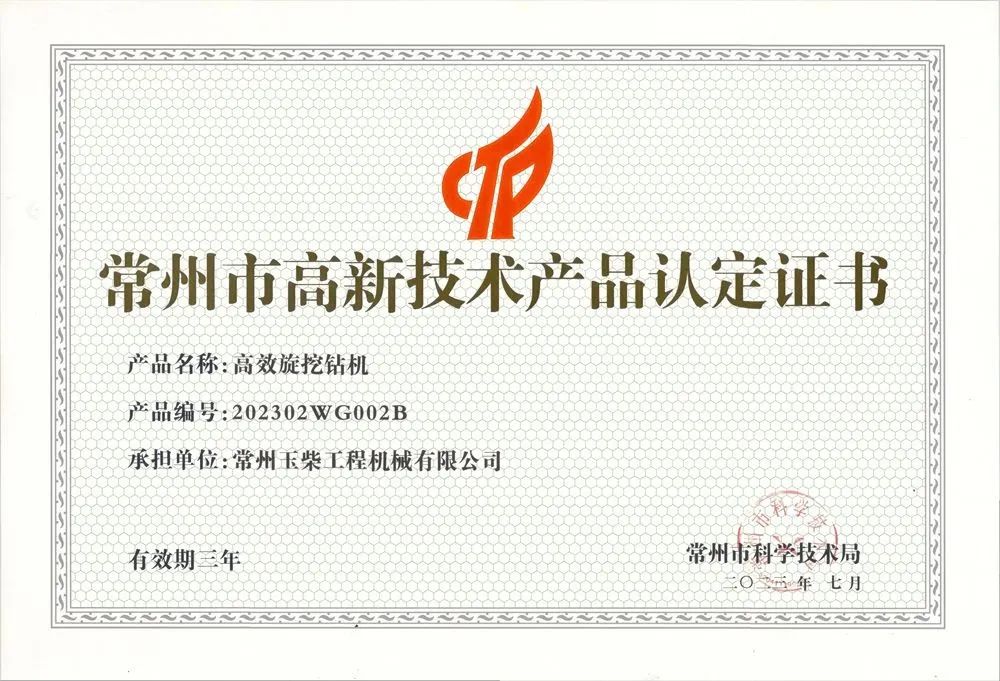 近日,从常州市科学技术局传来喜讯,常州玉柴获得“常州市高新技术产品认定证书”。