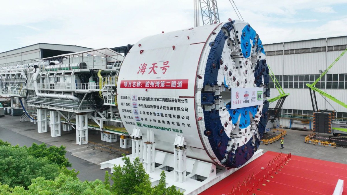 8月20日,中铁十四局承建的青岛胶州湾第二隧道“海天号”超大直径泥水平衡盾构机下线,即将服务于工程主线南线隧道建设,开启穿海之旅。
