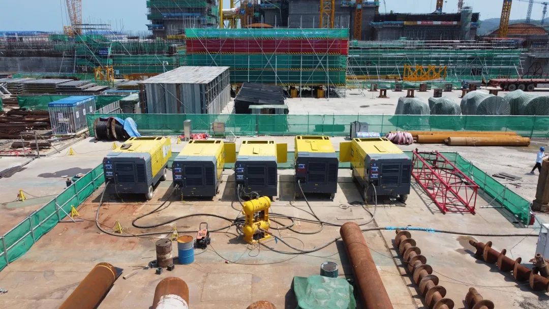 项目施工场地紧靠海边,地下水丰富,受季风气候影响,海水涨潮退潮频繁,严重影响桩基成孔的稳定性。由于核电项目规模大、工期紧,多单位、多工种交叉作业,给桩基施工更是带来很大压力和挑战。针对这些不利因素,京久基础项目部科学组织、统筹部署、反复研讨、优化方案、精准施策,确定采用大直径潜孔锤成孔工艺施工,桩径ф800--1000,钻孔深度25--40米,一次性成孔。