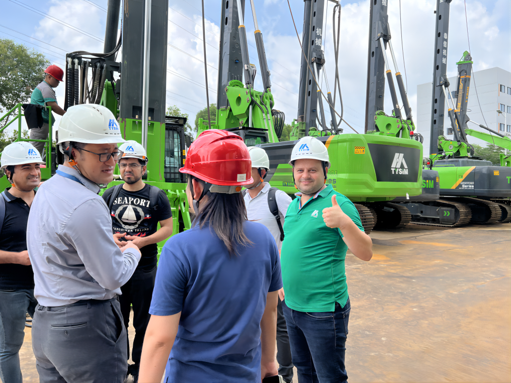 近日,泰信机械迎来贵客,土耳其代理商及以色列客户同时到访,以色列客户喜提多台旋挖钻机并对卡特底盘系列钻机新机型KR60C和KR110C进行现场验收。土耳其代理商及以色列客户同时到访泰信机械,既架起了泰信与海外客户交流沟通的桥梁,同时也成为海外客户了解泰信机械的重要窗口,实地考察、验收,亲眼见证泰信的更新和发展,让双方的合作更有信心。