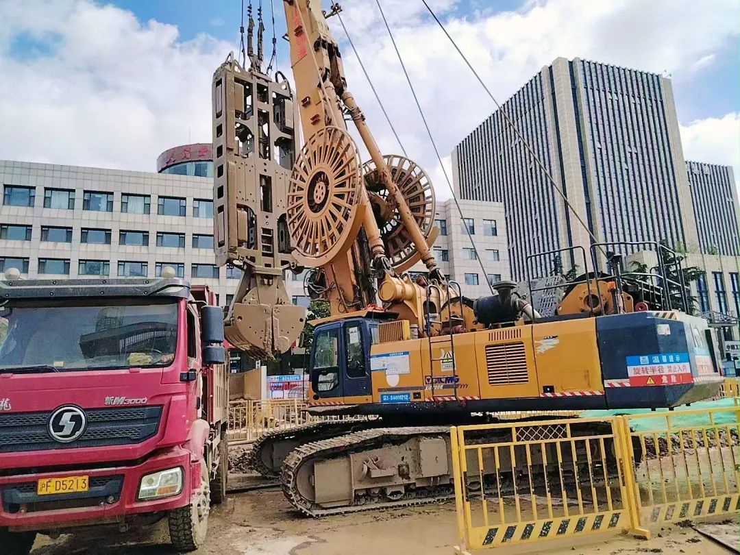 钻进硬岩、抓铣成墙。 徐工成套化桩工机械仅用75天就完成地连墙施工,比计划工期提前15天,有力地保证了后续各项施工任务的顺利推进。