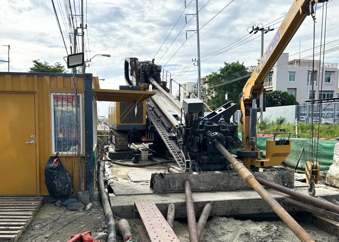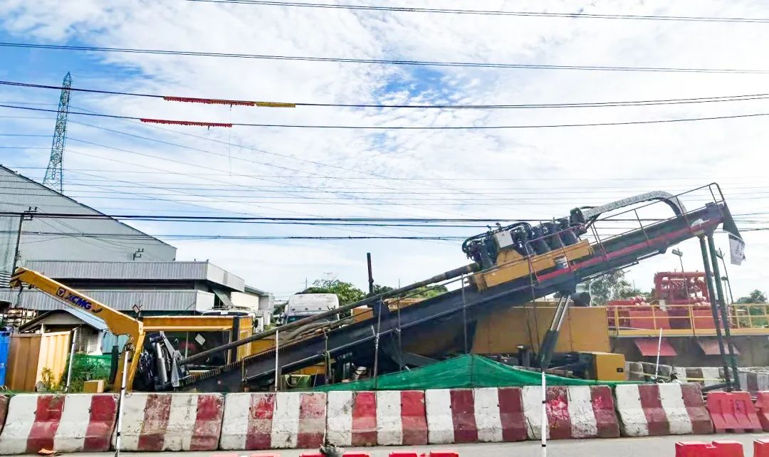 徐工大吨位水平定向钻机XZ4200现身泰国曼谷,助力曼谷BANGNA区电力管网铺设工程,该项目施工管径为160mm30孔管道,穿越长度450m,保障曼谷当地城市居民用电。