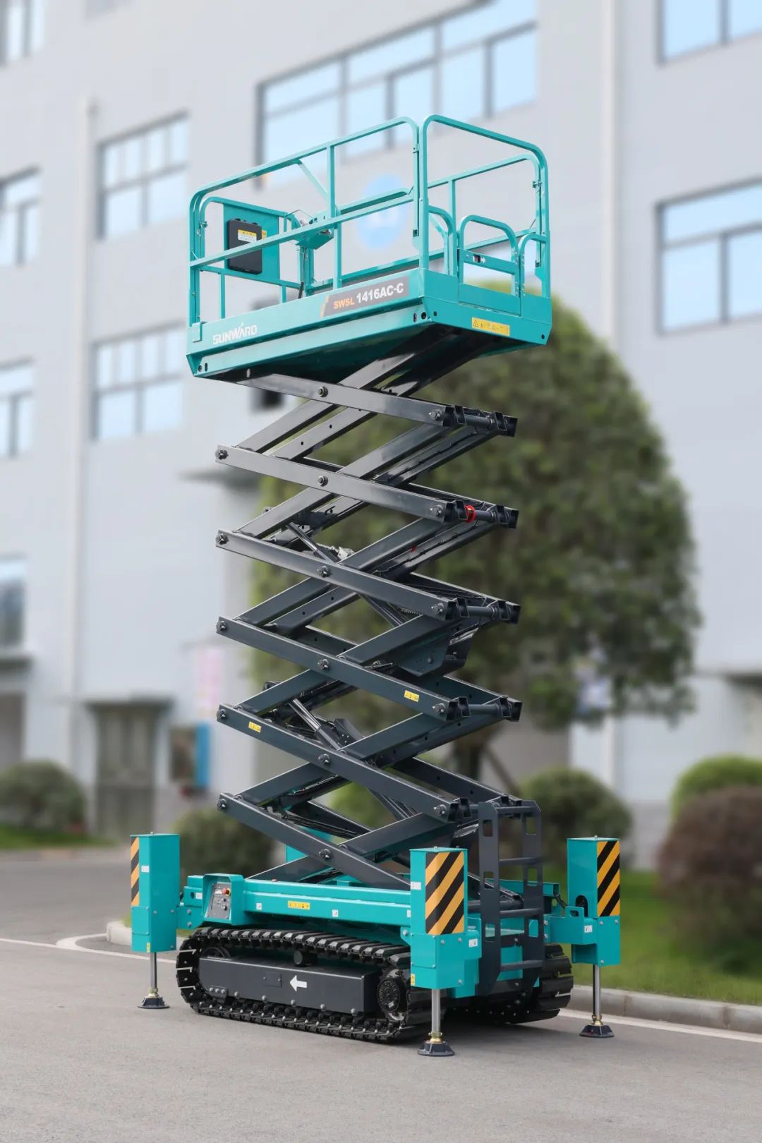 SWSL1416AC-C 履带剪叉式高空作业平台则是一款为了满足市场对电动剪叉的越障需求而开发的越野型电动剪叉,使用免维护电池作为动力源,采用大宽度越野钢制履带行走底盘,配置大功率交流驱动电机,具有超强的越障能力,可以轻松爬上40%的陡坡。