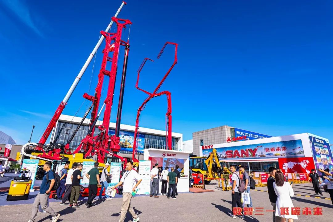 三一微混620 MHEV泵车、拖电620 DEV泵车在高空中比出巨型爱心,向全场观众发出热情的邀请,引得人潮纷至沓来,不仅是混凝土泵车行业电动化标杆产品,也成为BICES 2023必打卡地标。