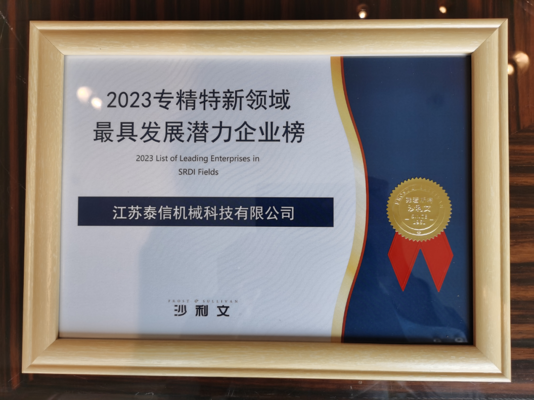 9月27日,以“汇星河之力,绘无限蓝图”为主题,以“共筑全域投资管理,寻找新时代确定性”为愿景,致力于呈现一场深度赋能“新投资”践行者的国际性价值视听盛宴的2023第二届新投资博览会暨第十七届沙利文全球增长、科创与领导力峰会(以下简称“沙利文新投资大会”或“大会”)在上海成功召开,江苏泰信机械科技有限公司在本次大会中荣获“2023专精特新领域最具发展潜力企业”称号。