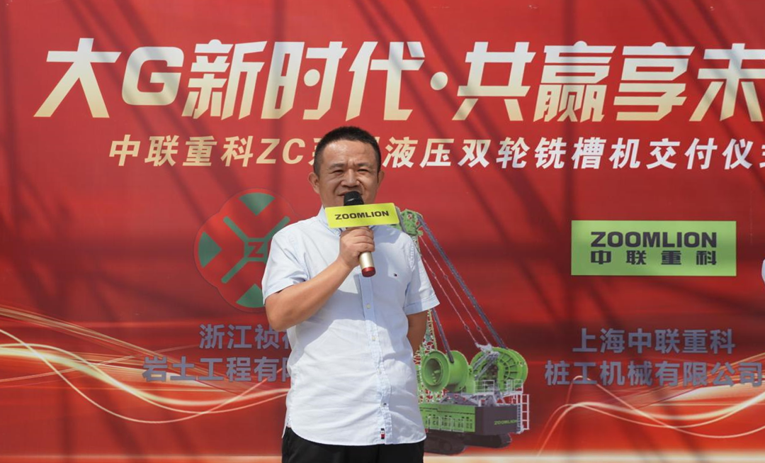丹桂飘香,金风送爽。10月8日,“大G新时代,共赢享未来”中联重科ZC系列液压双轮铣槽机交付仪式在中联重科上海松江工业园隆重举行。上海中联重科桩工机械有限公司总经理陈刚、副总经理仝赛与浙江祯祥岩土工程有限公司总经理翟长明、设备主管陆华峰共同出席本次活动。ZC120G双轮铣槽机正式交付浙江祯祥岩土工程有限公司,将为南京地铁项目施工提供又一强大助力。