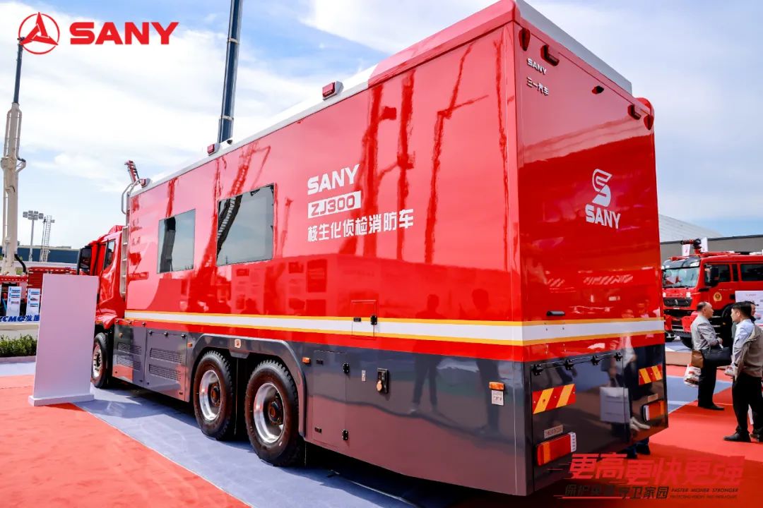 展会首日,备受瞩目的三一核生化侦检消防车与PW04多功能高压喷雾消防车震撼发布,引爆全场。