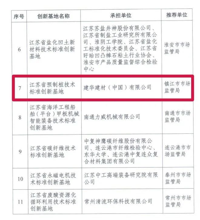近日,江苏省市场监督管理局印发《省市场监督管理局关于筹建江苏省金属材料智能检测技术标准创新基地等11个技术标准创新基地的通知》,由建华建材承担建设的江苏省预制桩技术标准创新基地成功获批。