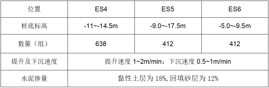 本次主要施工任务是ES4、ES5、ES6三车站的三轴搅拌桩槽壁加固,同时投入3套设备。