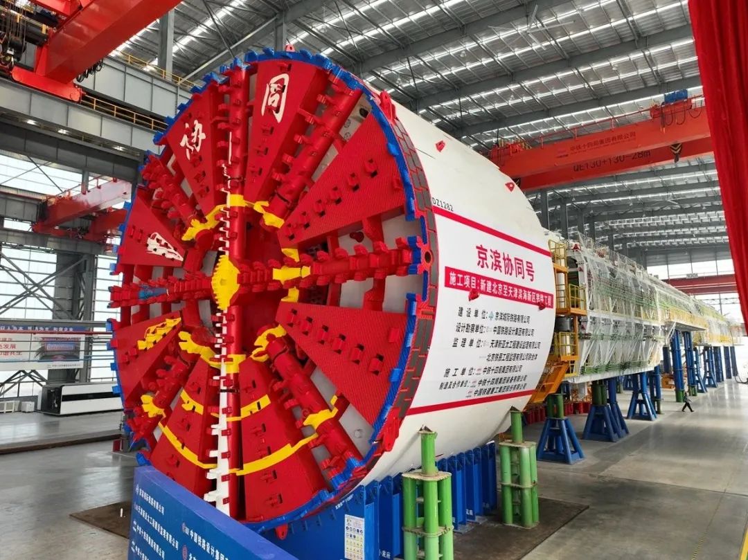 “京滨协同号”盾构机是中铁十四局集团装备公司所属的中国铁建大盾构基地下线的首台超大直径盾构机。该盾构机开挖直径13.8米,整机总长约123米,总重2900吨,总装机功率6950千瓦,是当前高铁隧道配置最先进、最智能的盾构机之一。