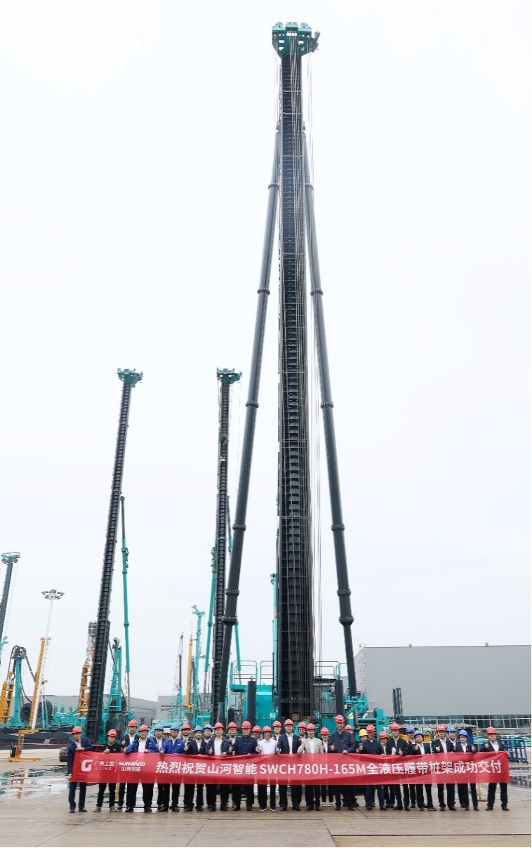 近日,山河智能SWCH780H-165M全液压履带桩架交付仪式在山河工业城隆重举行,该设备即将运往香港,参与重大工程建设。