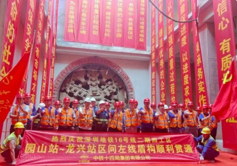 近日,由铁建重工和中铁十四局联合打造的“兴安一号”土压平衡盾构机刀盘破土而出,标志着深圳城市轨道交通16号线园山站-龙兴站左线顺利贯通。