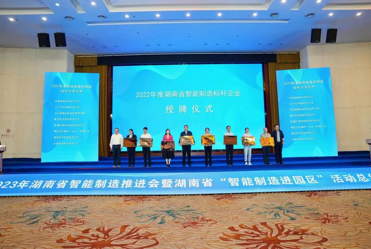 树标杆,打造智能制造企业。日前,在娄底举行的2023年湖南省智能制造推进会暨湖南省“智能制造进园区”活动总结会上,山河智能作为湖南省智能制造标杆企业被授予牌匾。