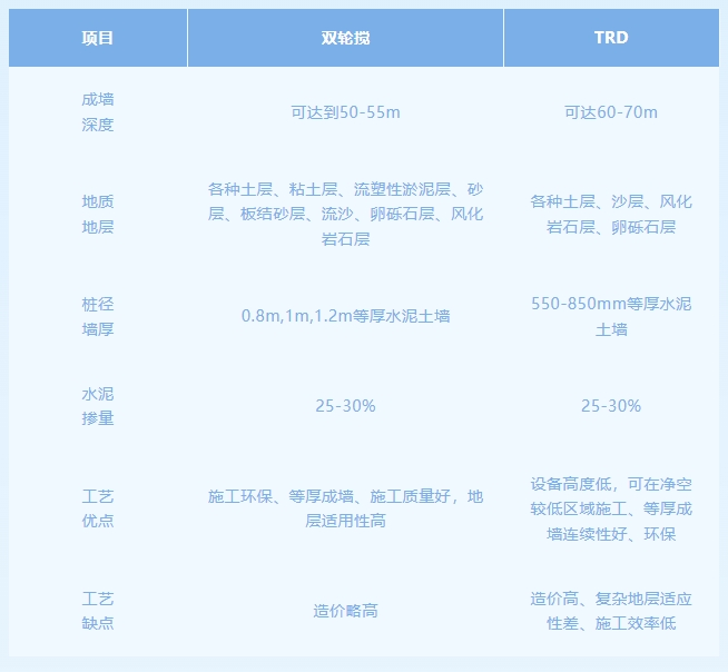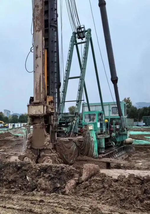 其中,项目难点在于施工地层前6米存在较多砾石,砾石层中夹着黏土,不仅粘性大,而且硬度高,导致普通钻机下钻困难。我公司生产的ZDM55双轮铣销搅拌钻机通过在两个大扭矩齿轮箱上布局合理的切割齿,可以轻松有效切削坚硬地层,提高切削能力和施工效率。