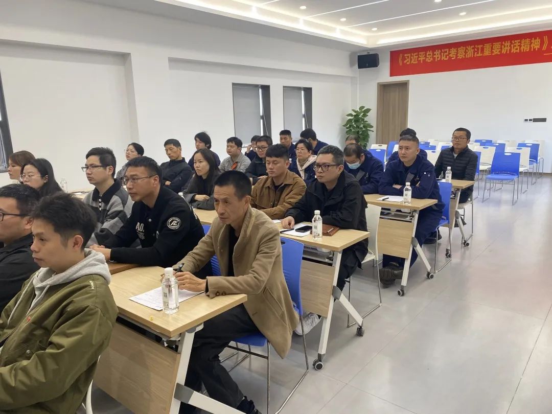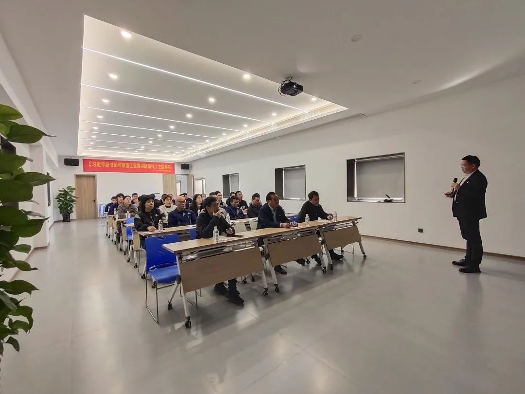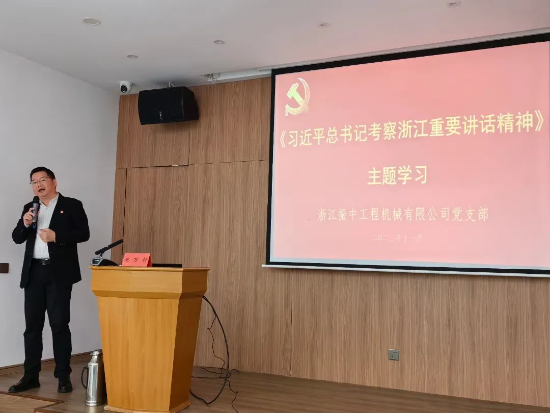 11月17日上午,振中机械办公楼4楼多媒体教室暖意融融,座无虚席,由振中机械特别举办的《习近平总书记考察浙江重要讲话精神》主题学习班正式开讲,瑞安市“宣讲名师工作室”专家池万村老师应邀授课。