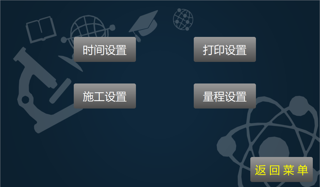 进入参数设置界面,可自行设置时间,打印,施工,量程等参数信息。