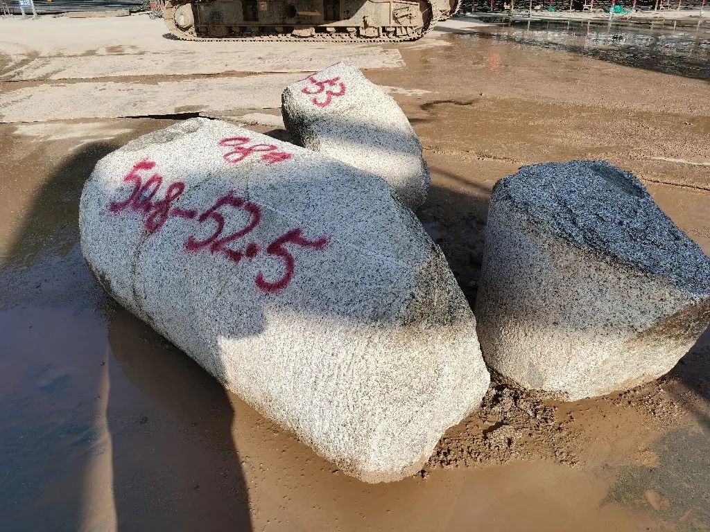 地质情况:上部分为人工素填层和第四系残坡积层。下部分为二长花岗岩,根据深度可分为全风化、强风化,弱风化。上部分地层深度34-48米,下部分最下面3米为弱风化花岗岩,硬度在100Mpa以上。