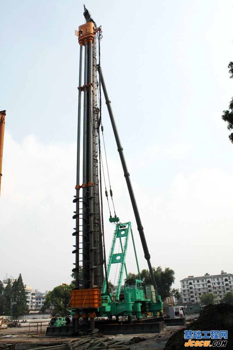 JB160A全液压步履式打桩架是上海工程机械厂有限公司研制的大规格的机电液一体化步履式打桩架, 具有完全自主知识产权, 技术水平达到国内领先水平, 并荣获2009年度上海市高新技术成果转化项目百佳证书。该机配置精良, 性能优越, 工作稳定可靠, 实用性广, 安全文明, 低碳节能, 符合环保要求, 适应各种桩基施工需求, 尤其能满足深基础施工中广泛釆用的地下连续墙施工工艺(即SMW工法), 是高架道路, 高速轨道交通, 地铁车站, 高层建筑和江河堤坝以及地下隧道的深基坑支护和基坑止水防渗墙工程的高稳定性施工设备。