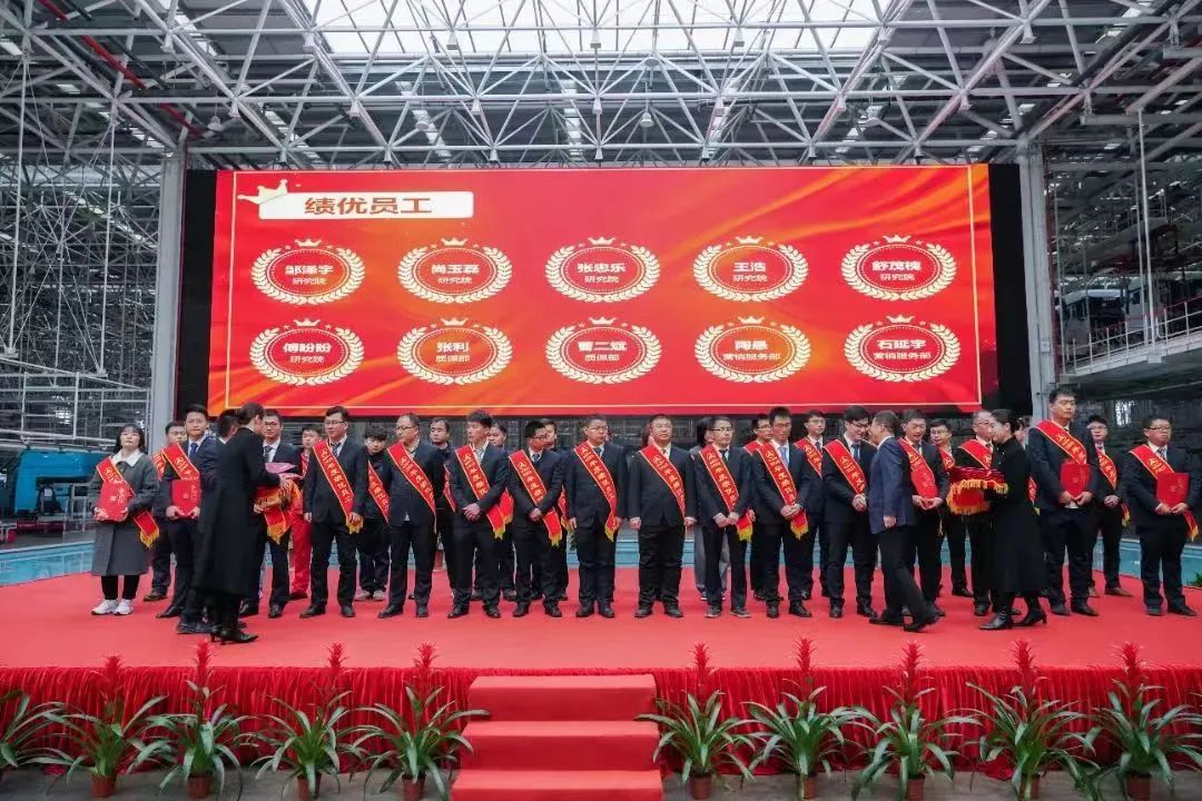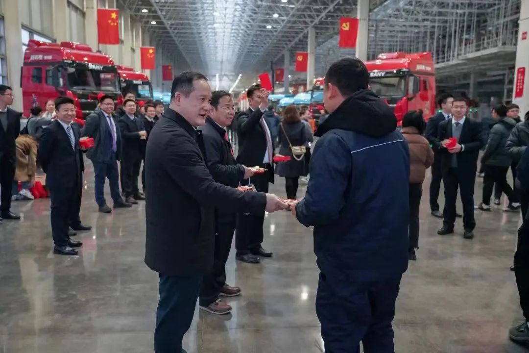 7点38分,三一重卡公司领导们在仪式现场夹道迎接返司员工,为员工们派发新年开工红包,寓意大吉大利、2024一起发!开工仪式上,三一重卡109名、商用车智造公司66名、道依茨动力45名共220名员工被颁发“年度绩优员工”称号。