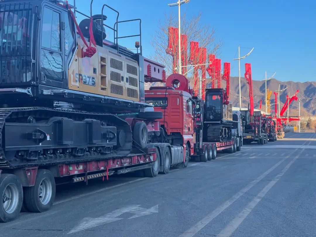 三一智造2024年新春发车仪式暨开工典礼在北京南口产业园正式举行。现场,身披大红花的6台三一旋挖钻机,3台水平定向钻,一字排开,整装待发。本次发车的旋挖钻机涵盖SR135S、SR175S、SR375S、SR435S多款明星机型,及SD450S水平定向钻。伴随着发车的号令,运输车队浩浩荡荡地驶出了产业园的大门,发往全国各地,为龙年写下红火的开篇。