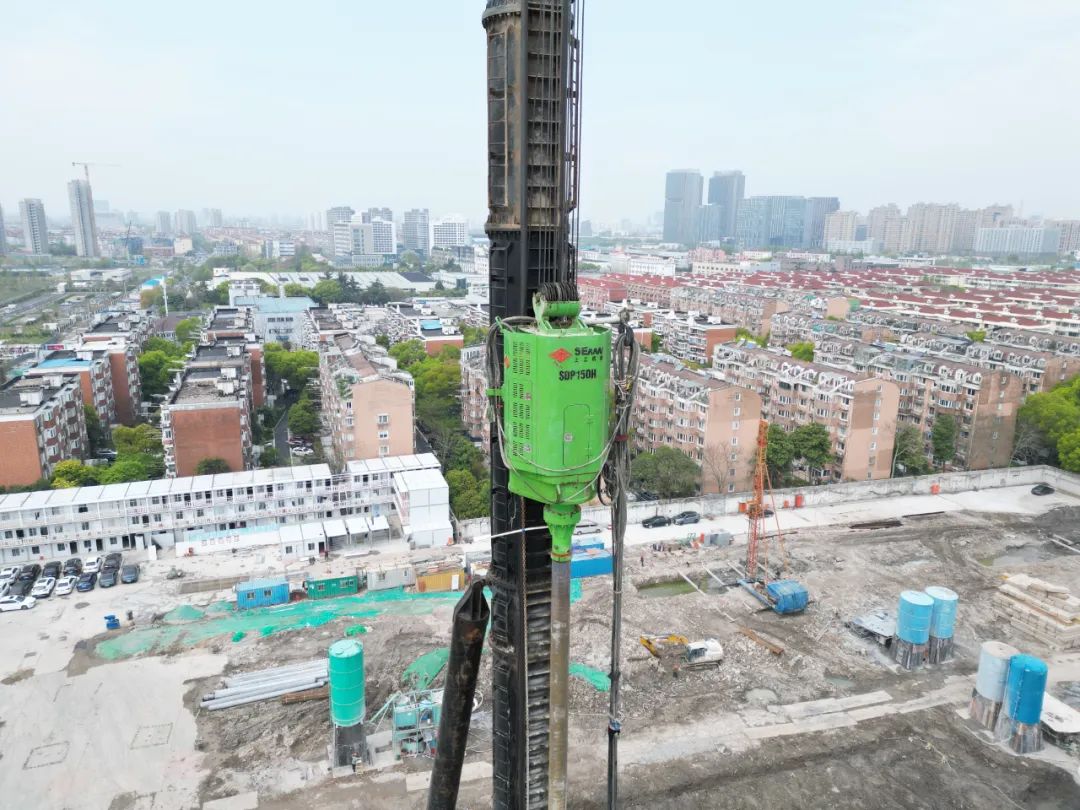 作为上工机械完全自主研发的绿色环保桩基础施工设备,2台SDP150H静钻根植工法机在本次项目中表现亮眼,单日单机成桩约300m/天,约8-9根,有效保障项目进度平稳推进。