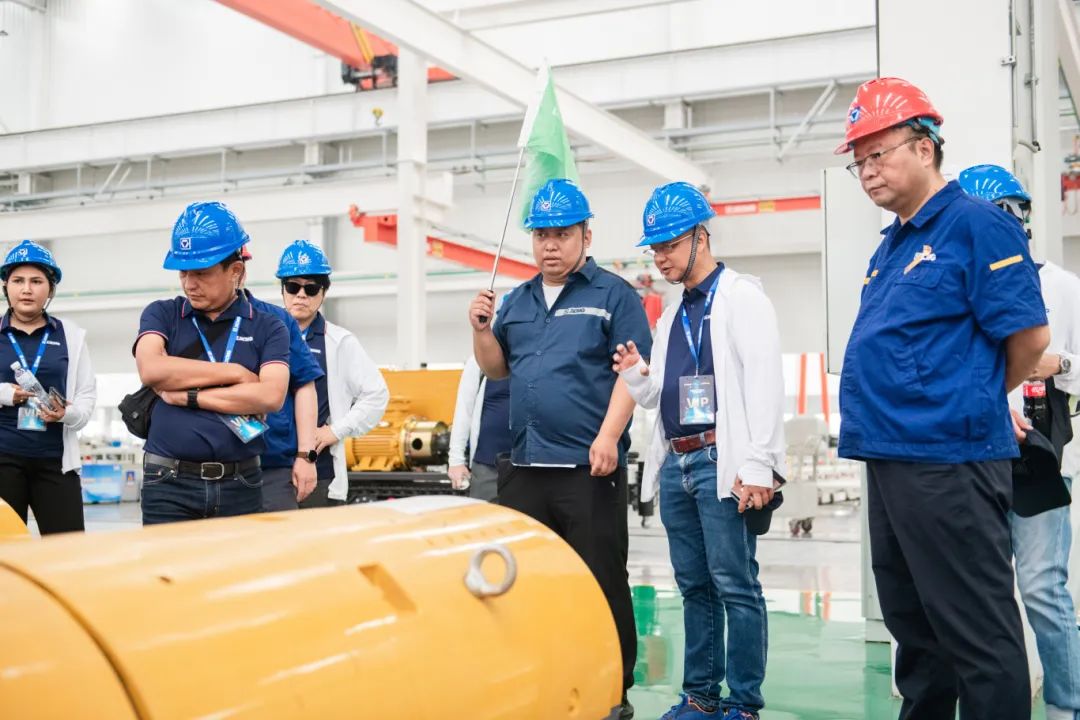 走进智能化生产车间,零距离体验现代化智能制造生产能力。履带纵梁自动化装配线、底盘智能装配专线、智能化生产信息管理系统……各个工序无一不吸引大家驻足观看,客户眼界大开、连声赞叹。
