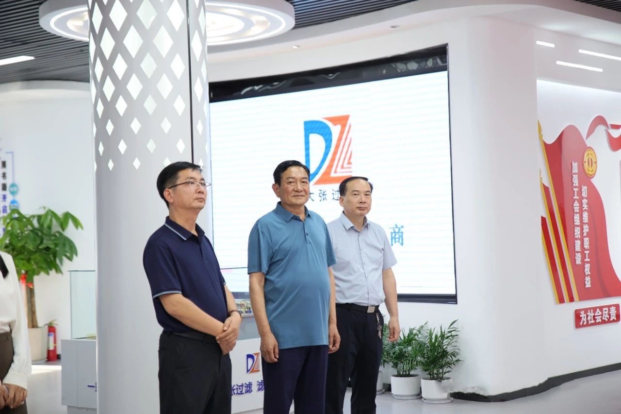 调研组一行参观了企业文化展厅,与董事长张振利亲切交流,全面了解企业发展历程、技术专利、研发成果,并详细询问退役军人及军属在公司员工中所占的比例,对大张公司在退役军人就业创业工作做出的贡献给予充分的肯定和赞扬。