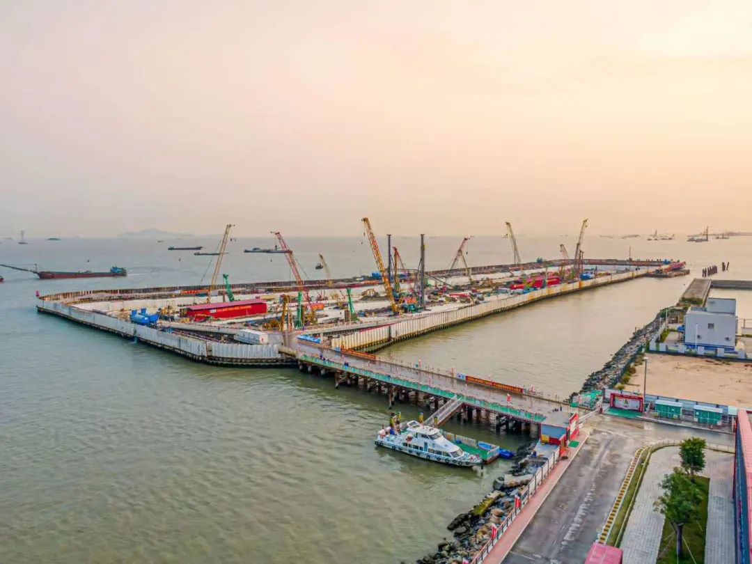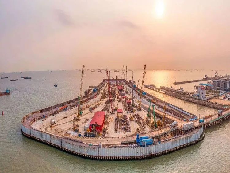 东人工岛隧道围护结构施工现场