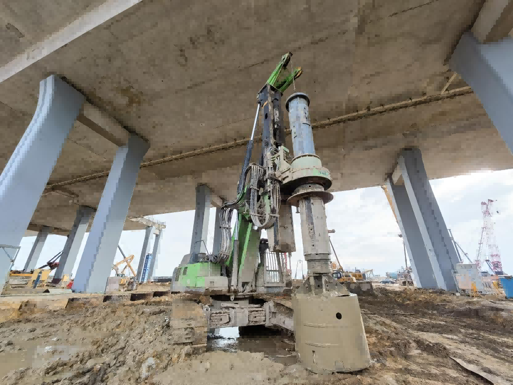 这一设备不仅提高了施工效率,降低了施工成本,还在复杂地质条件下展示了其强大的适应能力和可靠性。泰信机械低净空旋挖钻机的再次成功应用,为深中通道项目攻克了基础施工的技术难关。