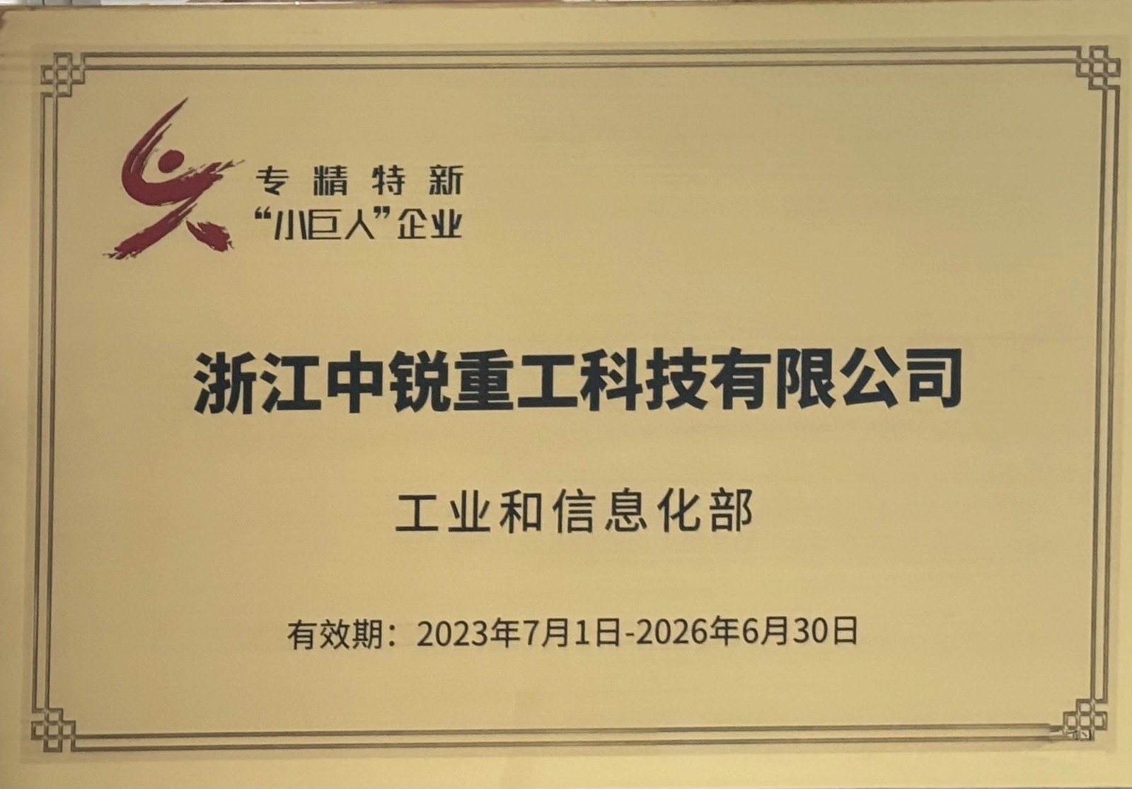 7月19日,中华人民共和国工业和信息化部评定的第五批***专精特新“小巨人”企业(宁波地区)授牌仪式在宁波余姚四明湖开元酒店举行,中锐重科于2023年被评定为第五批***专精特新“小巨人”,公司总经理赵美祥亲临现场接牌。