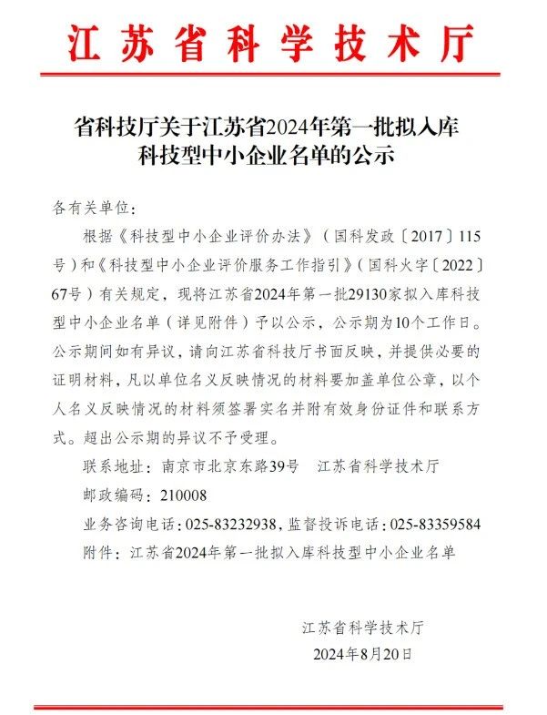 近日,江苏省2024年**批科技型中小企业名单公示,锡探科技成功入选。
