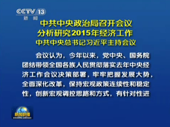 5日,中共中央政治局召开会议,分析研究2015年经济工作。会议指出,2015年是全面完成“十二五”规划的收官之年,要主动适应经济发展新常态,保持经济运行在合理区间,并明确了坚持稳中求进工作总基调。至此,中国2015年经济路线开始揭开神秘面纱。