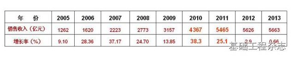 2013年,工程机械行业完成营业收入5663亿元,比2012年增长0.66%;工程机械产品出口195.31亿元,同比增长1.96%;九项主要工程机械产品销售量比2012年增长5.83%,其中压路机增长18.3%,叉车增长12.8%,装载机增长4.5%。